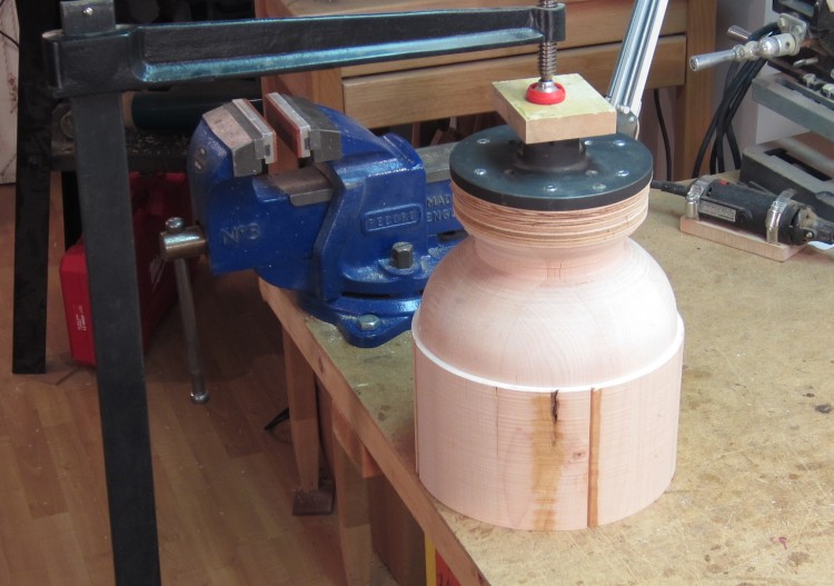 For a nice wood vessel of this size, you'd usually need to embark on a challenging quest for the elusive perfect Big Turning Blank, with the right size, shape and wood type. But that's a pretty hit-and-miss affair, since finding the right one is dependent on the size of your piece and the available blanks.
