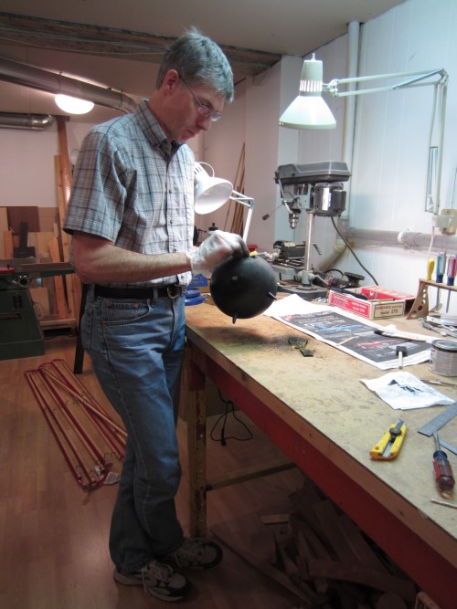 And here's a (rare) picture of Yours Truly, still sanding the paint. I'll just say here that I hope my head does not have that weird oblong shape in real life.