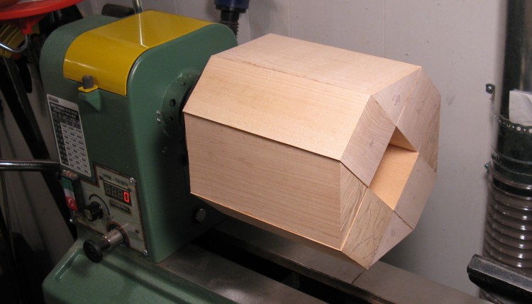 But since I was planning to use an opaque iron-like finish, the grain doesn't show, which gave me a bit more freedom in how it was constructed. With that in mind, I went for a segmented blank. I used Maple since it turns decently, and I had a couple pieces of adequate size - about 3" square.