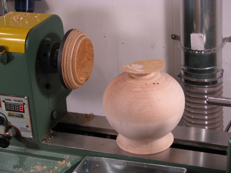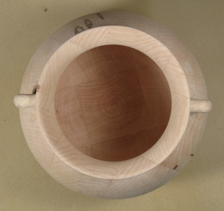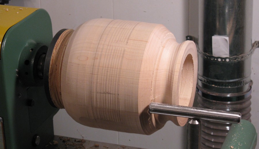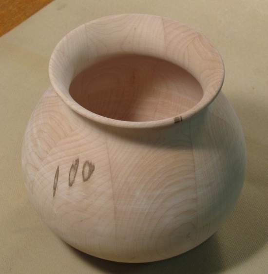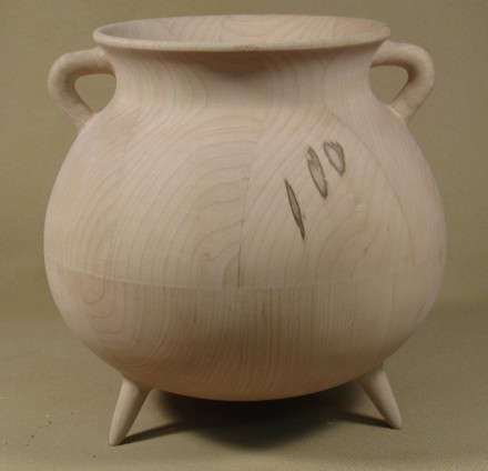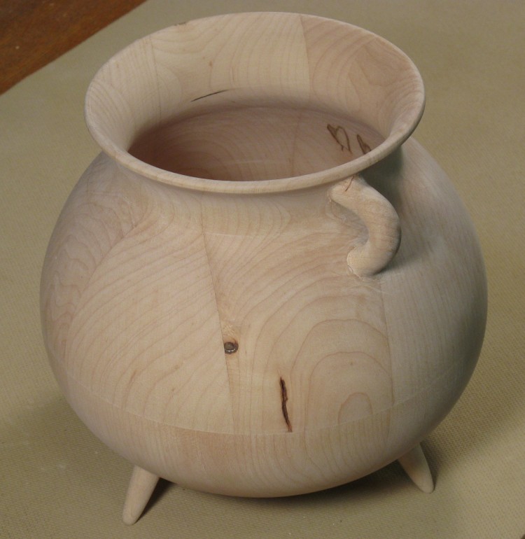 ...and after a bit of more-careful turning, this shape was completed. It isn't hugely different than the first attempt, but the subtle curvature difference moves it solidly into "cauldron shape" territory.