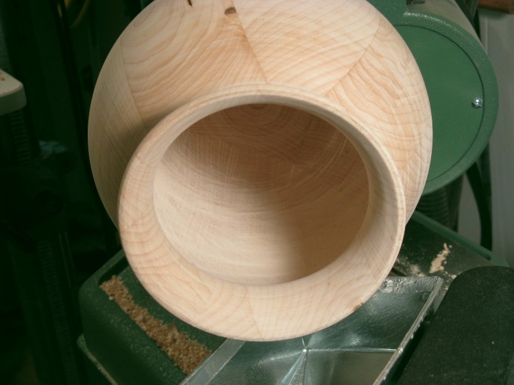 The inside hollowing was completed as well, with a wall thickness of around 0.2". Inside and outside were already sanded in these photos.