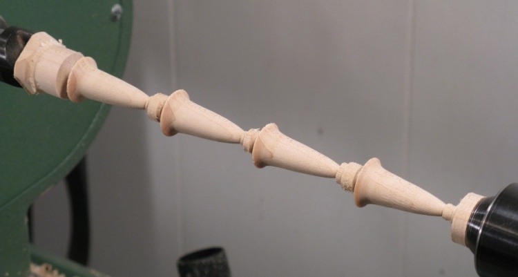 Here the legs have been turned, and need to be sanded and cut apart.