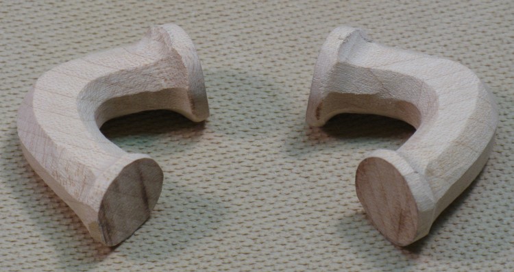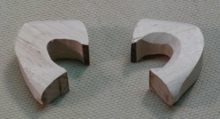 Here are the oversized blanks that I started with, one just cut to shape, and the other where I started the rounding process.