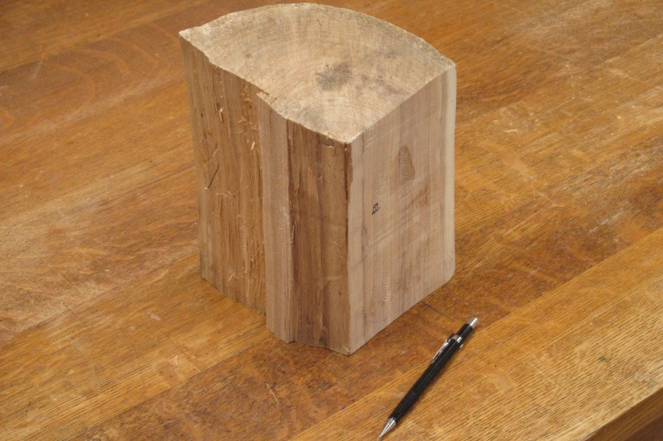 This is the piece of spruce that I'll be using for the vessel (Spruce being my best guess as to the species). It has a couple spots where I had done some test carvings on one side but those will soon be rendered unto dust.