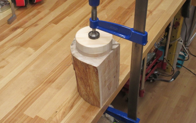 I planned to use almost the whole length for the vessel so after cutting the end square I glued on a disc to give enough extra length to accept the faceplate screws.