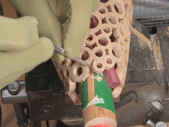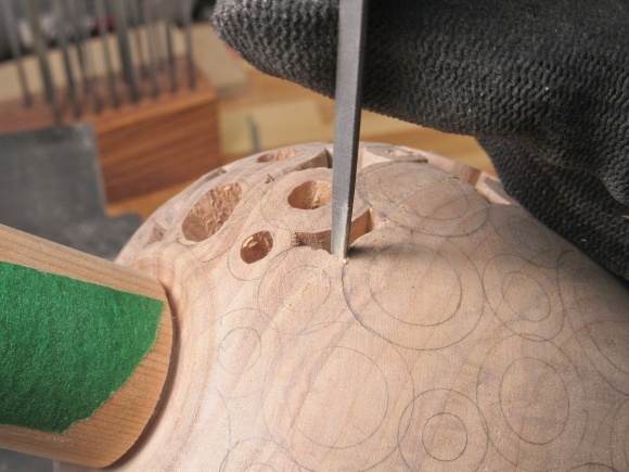 These shots show some of the work on between-donut openings. The bulk of the wood had been removed using the jig saw and then the hand tools come into play.