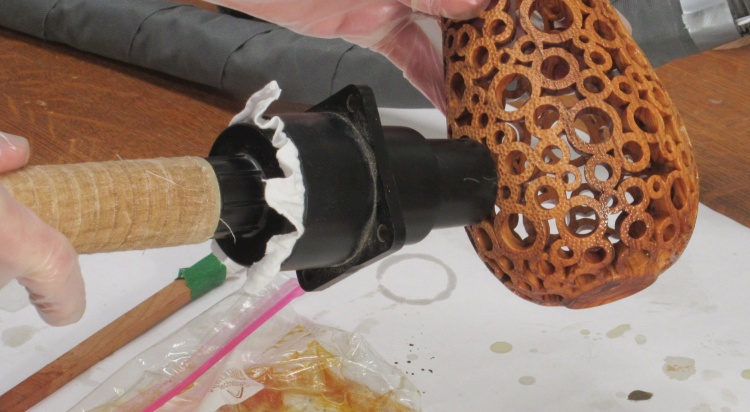 The vessel was just sloshed around in the Ziploc bag to ensure all parts were covered in finish.