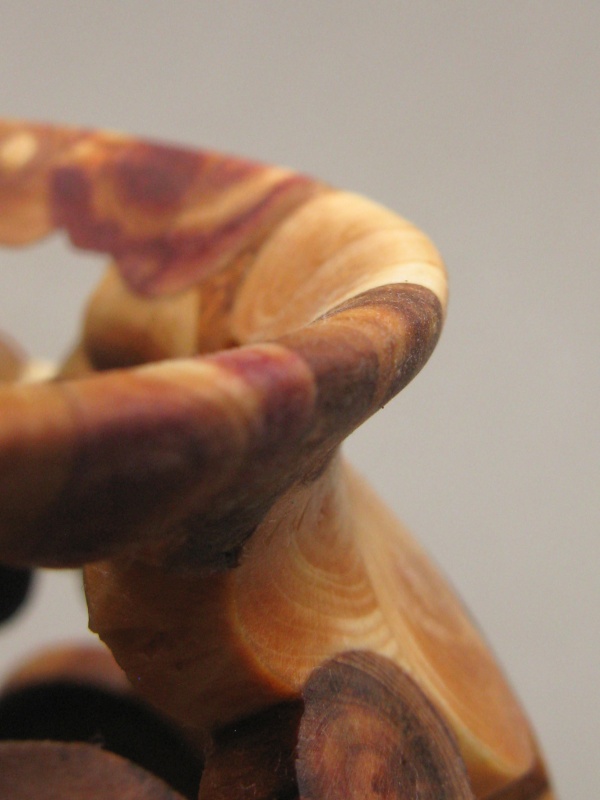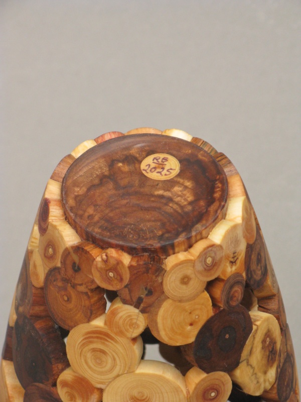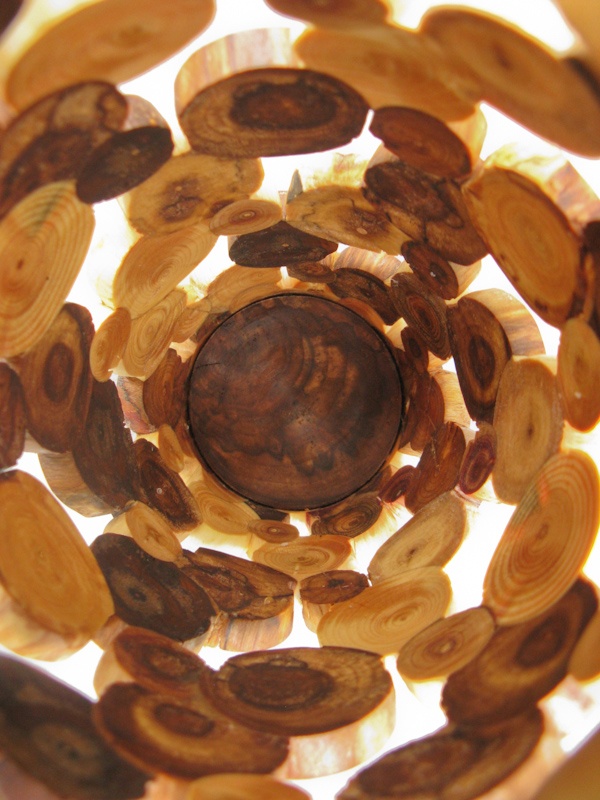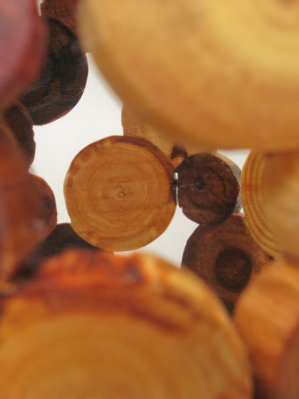 To maximize the end-grain effect I used rounded "logs" of various diameters and arranged them in a repeating spiral pattern, interconnected to provide a bit more stability. The