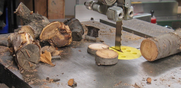 In this shot I have enough to get started and there are some more branches waiting their turn on the lathe.
