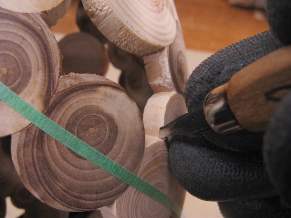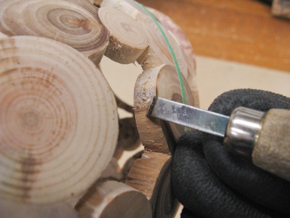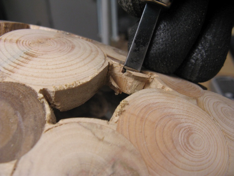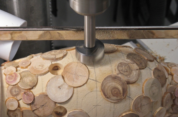 So then all those circles needed to turn into holes into which short logs could be glued.