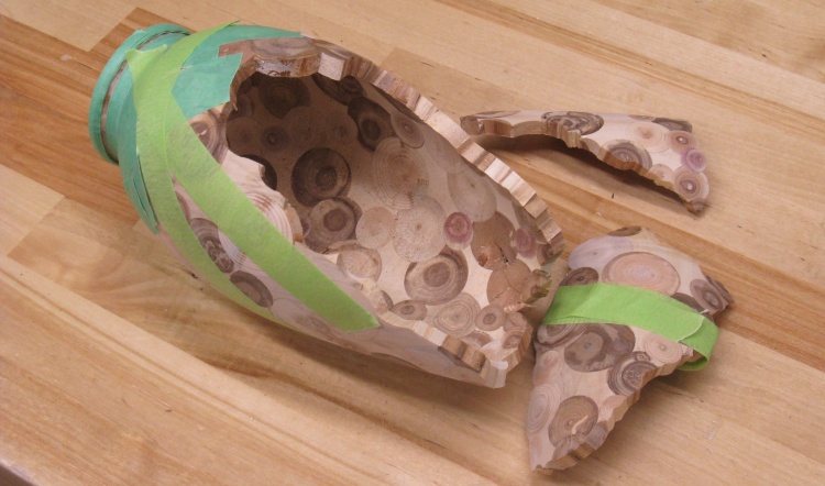 The vessel with the first couple of pieces glued back in