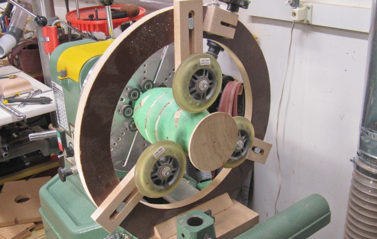 I used a jig that I'd previously made for sanding the inside of vessels and started at 100 grit sandpaper.