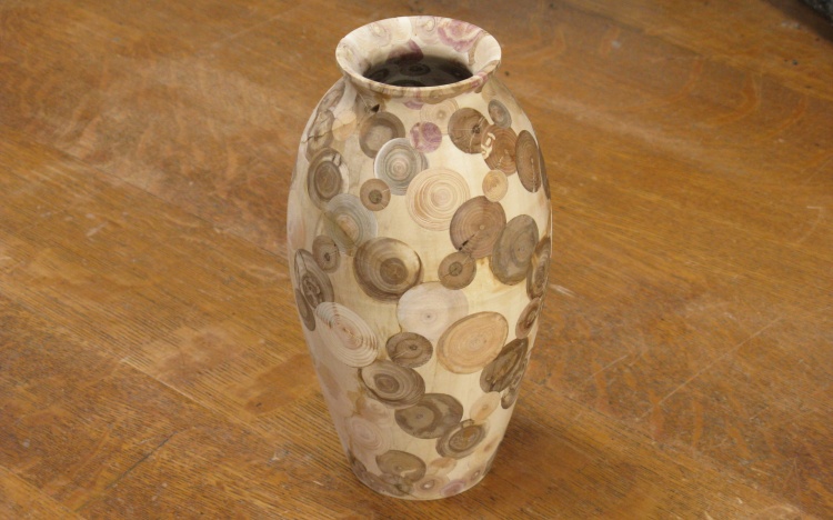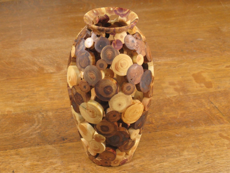 There didn't seem to be any easy way to make a blank to turn on the lathe into an end-grain vessel. You could use square or rectangular pieces fitted together like you would for a turning of a conventional composite vessel but that hardly fits with the round end-grain pattern of your average tree.