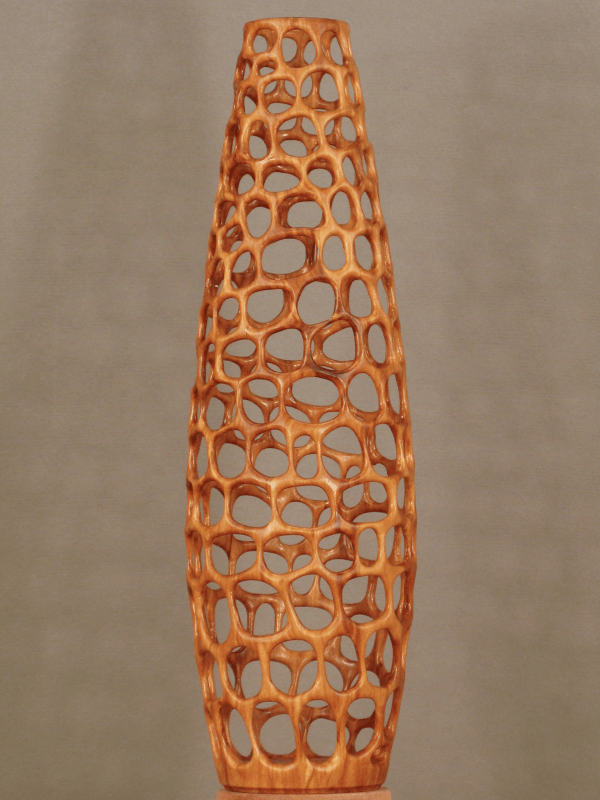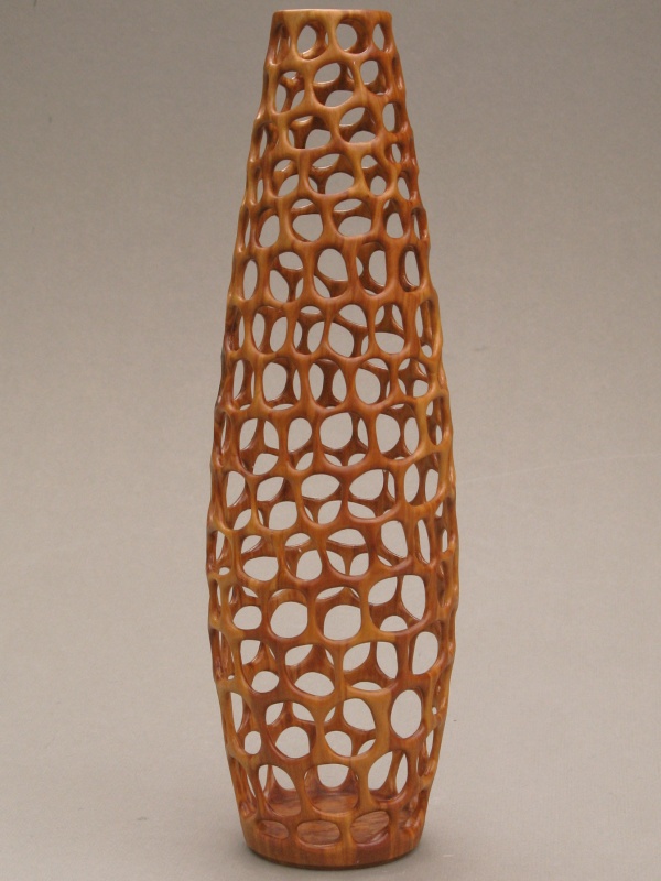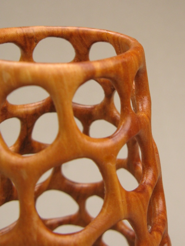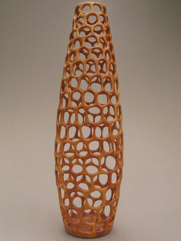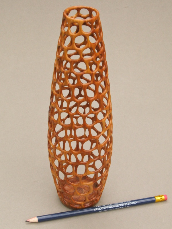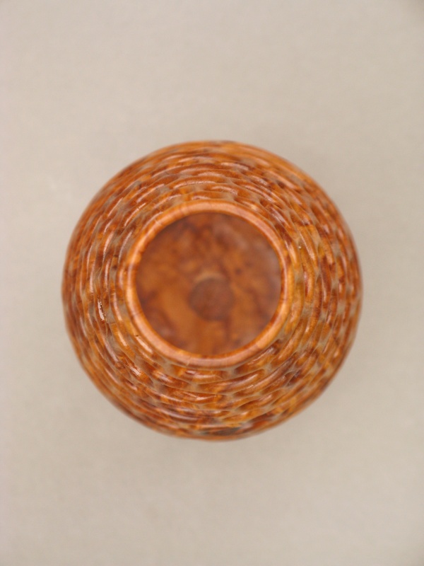 This vessel was turned on the lathe until it had nice thin sides (about 1/8" thickness) and was then