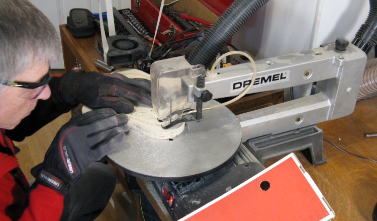 So it was time for Plan B. I hauled the scroll saw up and tried it out. It was a bit slower than the jigsaw but easier to control, so I finished up with this setup.