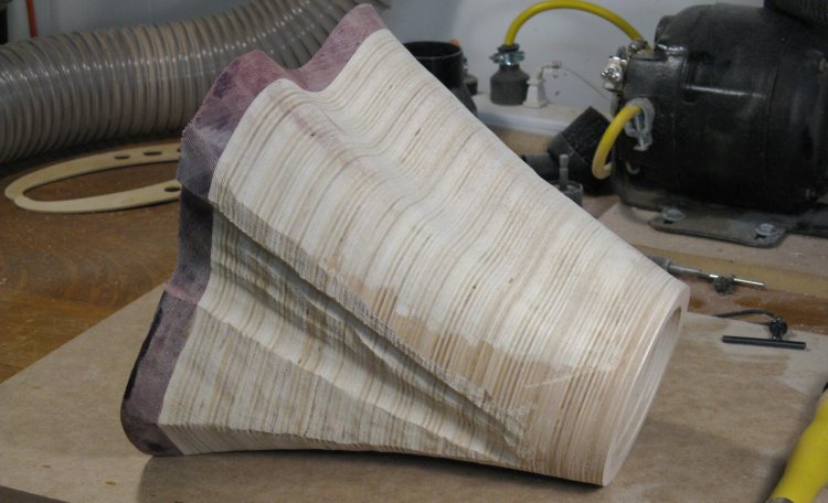 Here the outside is shaped. It isn't very smooth yet, but that will be fixed in the sanding stage.