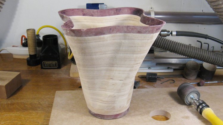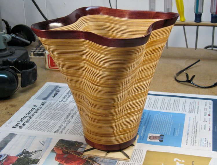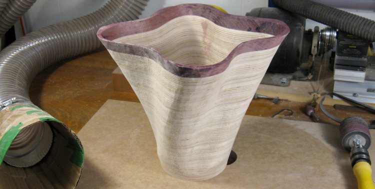 After the contour shaping was done and the bottom rounded off, it was pulled off the lathe.