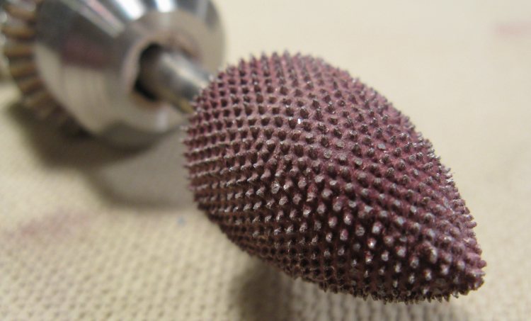 I mostly alternated between the burr and the sanding drum with an aggressive 50-grit sleeve. Here it's the sanding drum's turn.