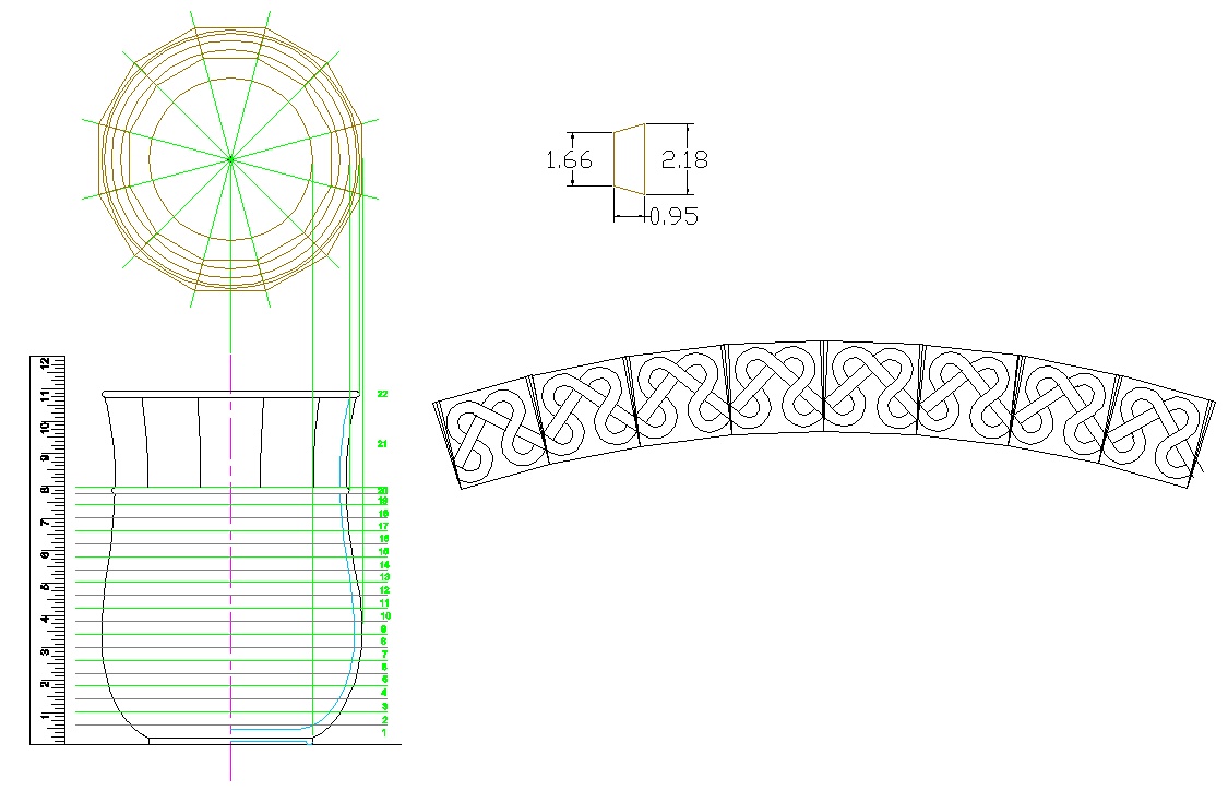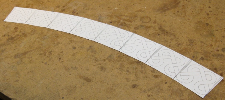 I made a full-sized pattern of the...um...pattern which is shown here. It was designed to wrap around the sloped top of the vessel but I didn't actually end up using it.