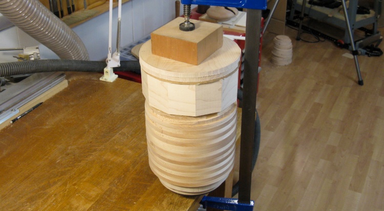 The bottom part of the vessel went on the lathe mostly because I wanted to even up the front face. This would ensure that the top of the stack was exactly parallel to the base and also flat so that it would nicely mate with the top section.