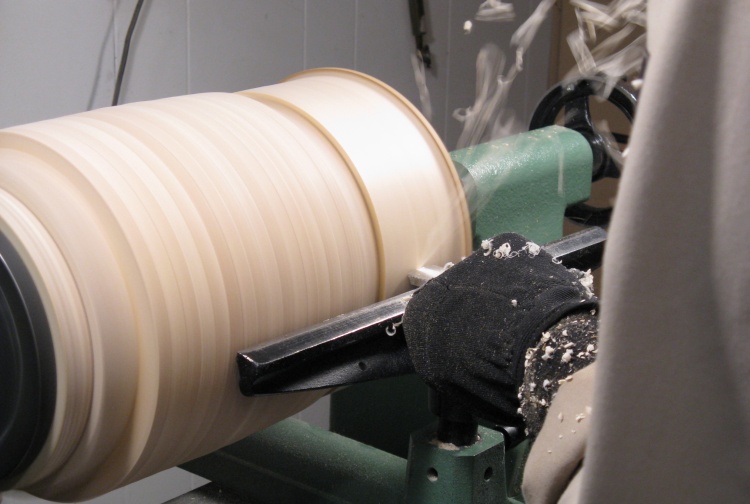 Here using a bowl gouge, I'm removing excess wood to get the right height for the circular "foot".