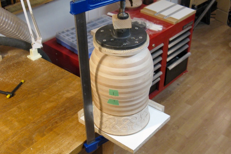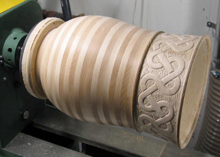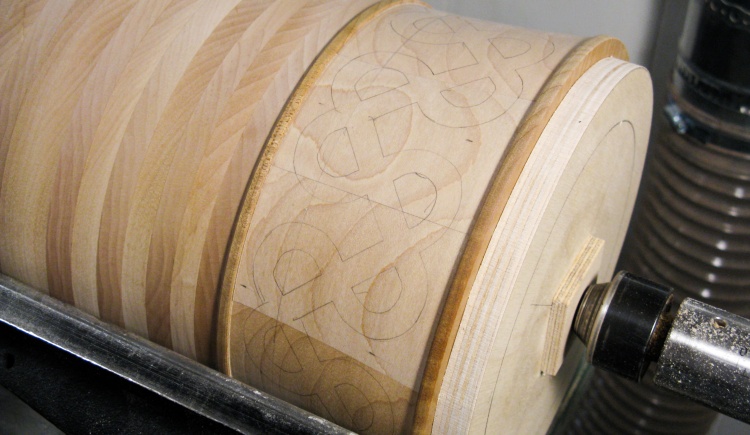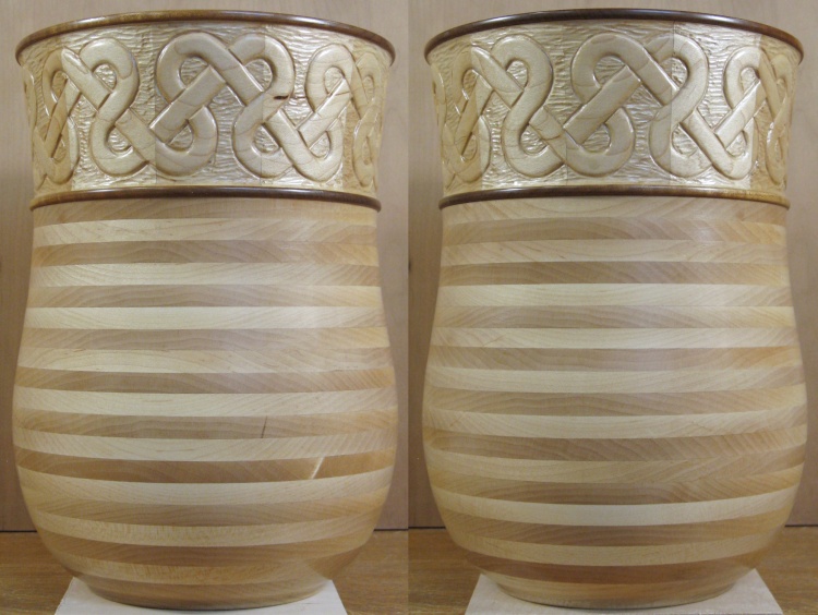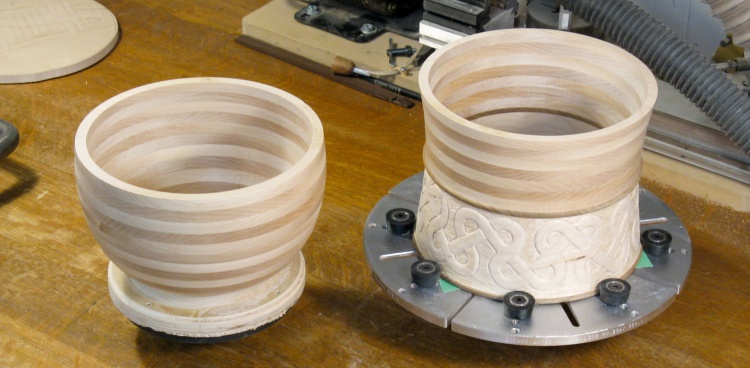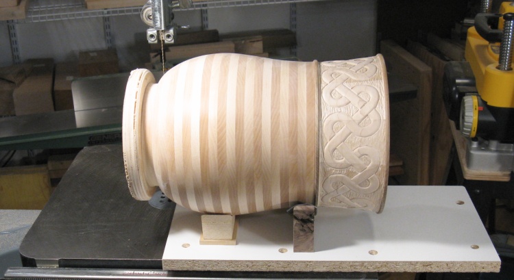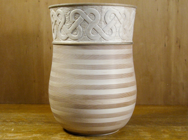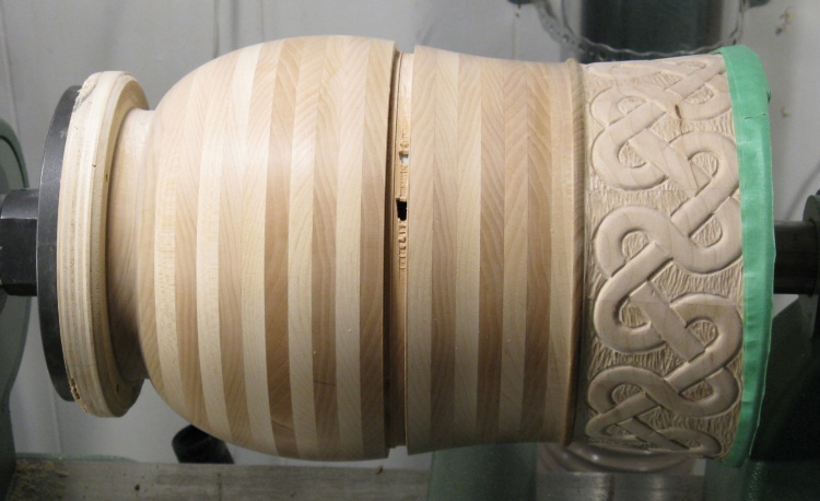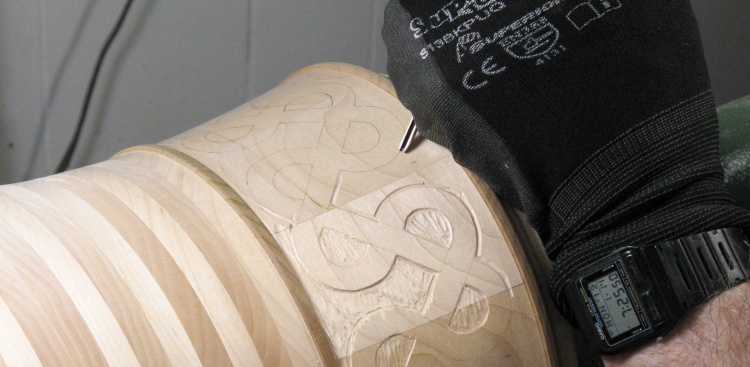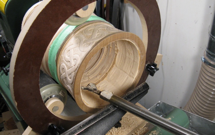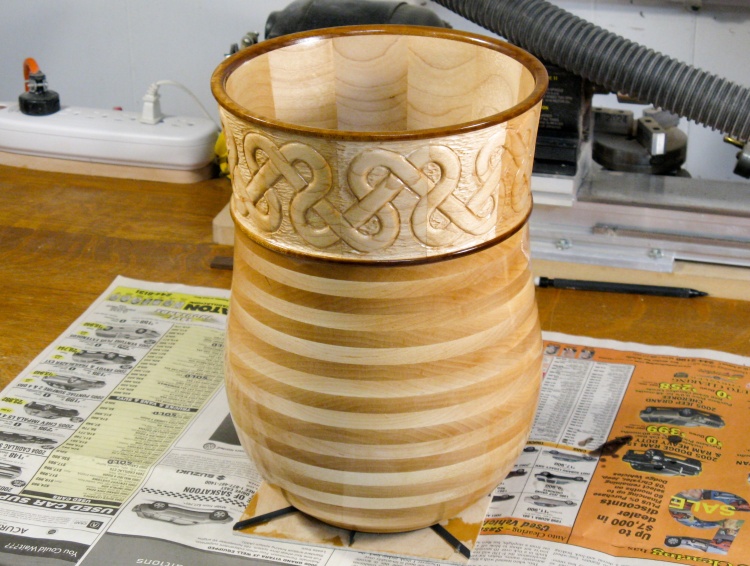 The plan was to have a design carved into the top portion of the vessel. I chose a sort of simple knot figure that would repeat 8 times around the circumference.