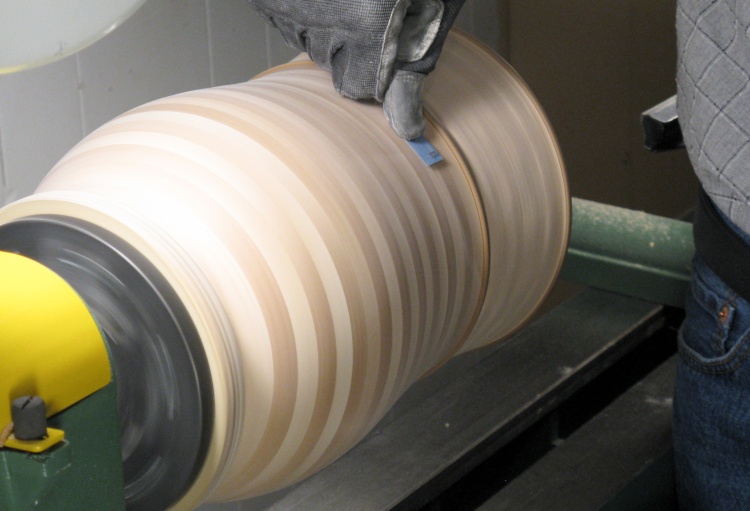 *The color of each layer is actually due to the grain orientation. If the vessel is turned then the dark layers become light and vise-versa. This actually produces a wierd strobing effect when the vessel is spinning, with each layer switching between dark and light several times a second.