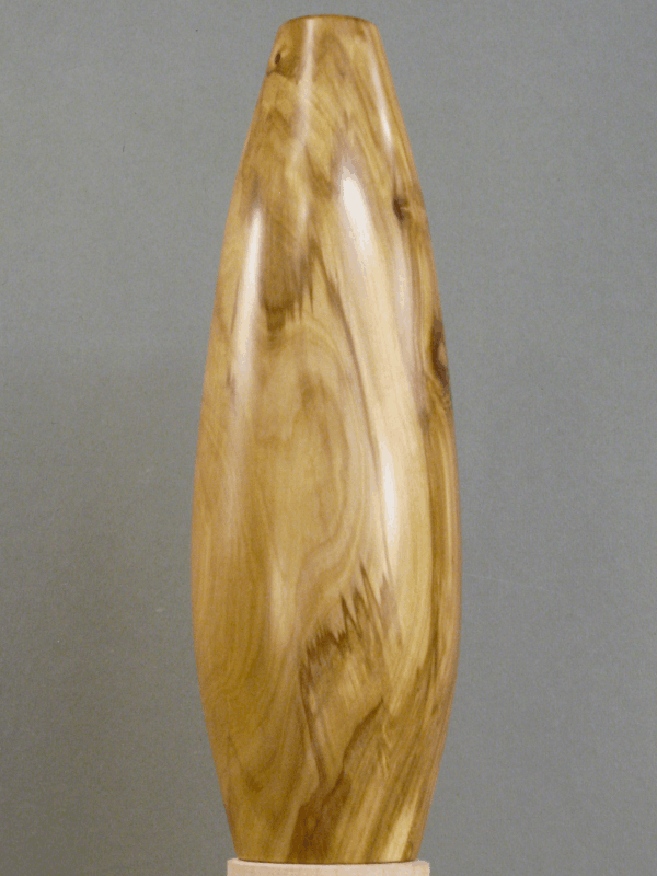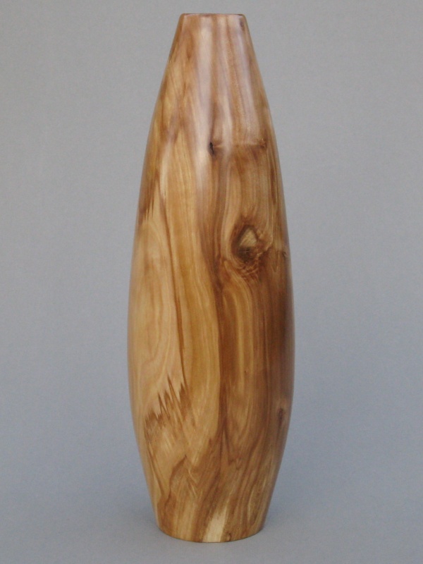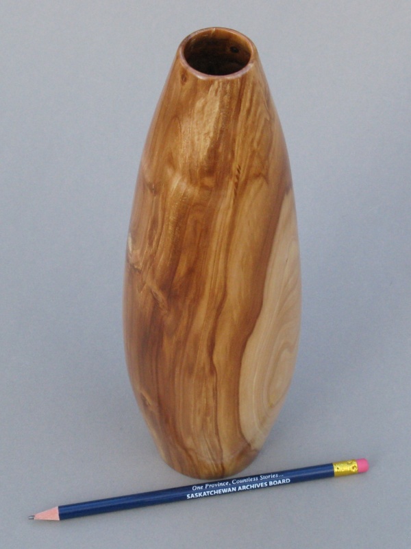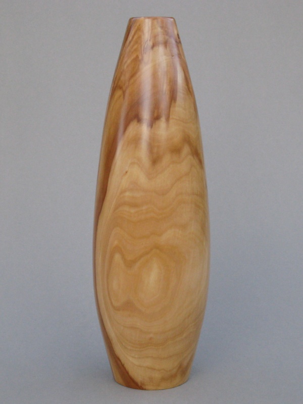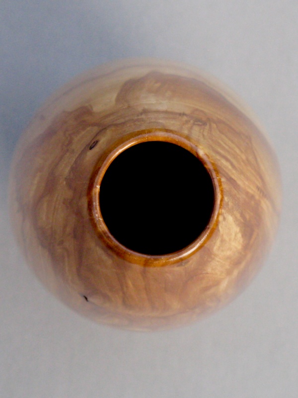 I didn't have a specific design objective in mind this time around; rather I wanted a project to try out a new hollowing system. I chose to make a deepish vessel with a narrow opening so it would be a bit of a challenge. The system worked out well (much better than hollowing by hand) and the walls were turned to be about 1/8" thick.