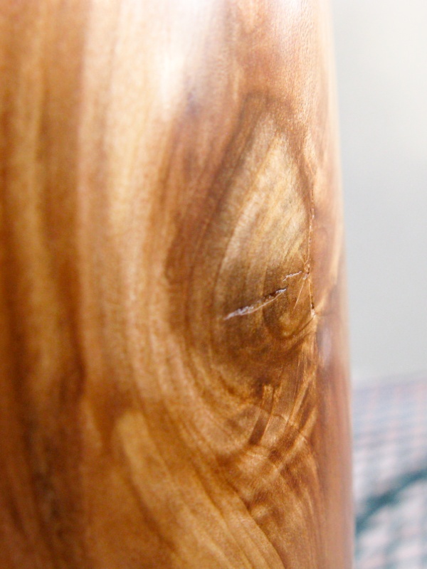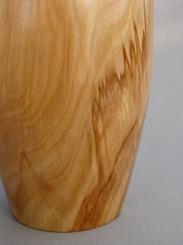 I'm not a huge fan of plain turnings so I initially thought I would add some carving/piercing/incising to it, but the grain turned out to be so interesting by itself that it didn't need anything else. There are some details on the turning and hollowing