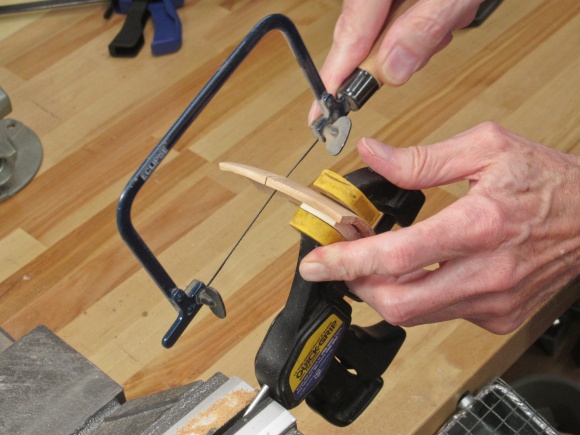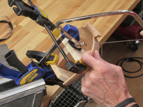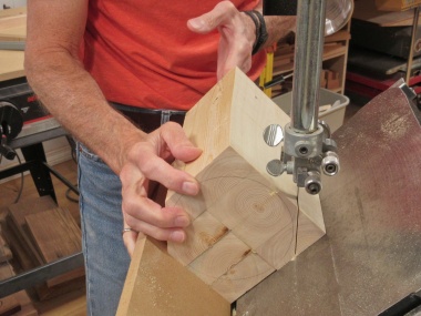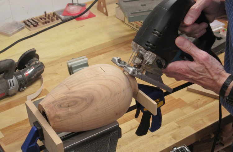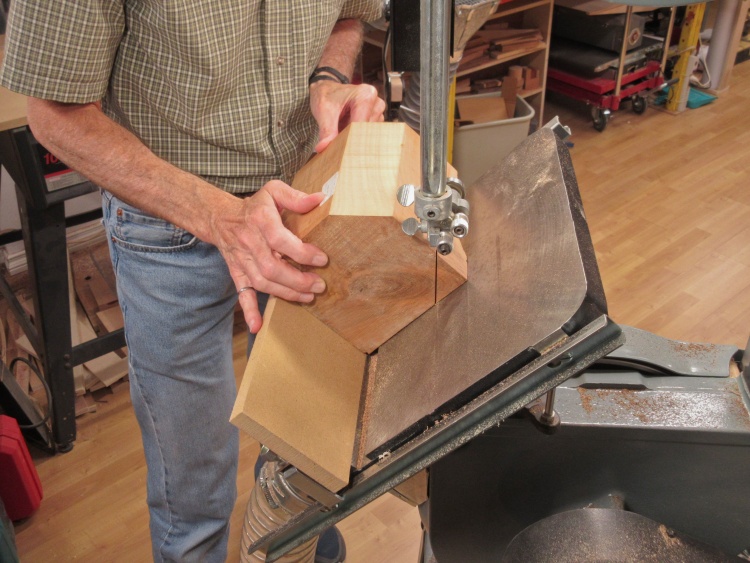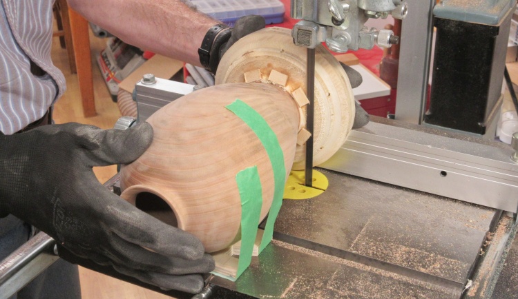 At present the bottom was glued to those iffy plywood disks so the bandsaw was used to chop off as much as practical of the extra stuff.