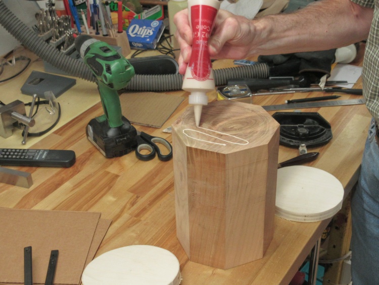 To get that I glued onto one end those two rounds of 3/4" plywood visible in this shot of my messy bench.