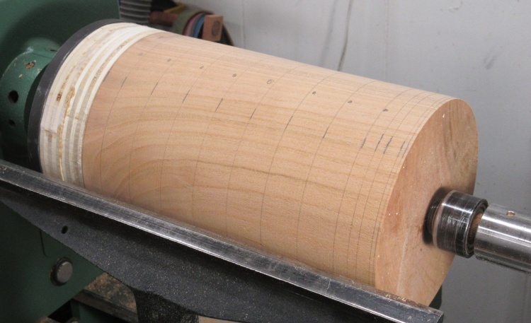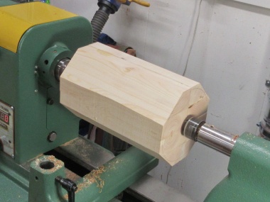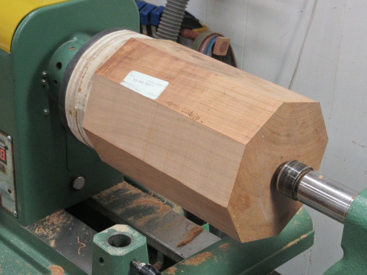 See? Block-shaped. At any rate I decided to cut off the corners to reduce the amount of sawdust the turning would generate.
