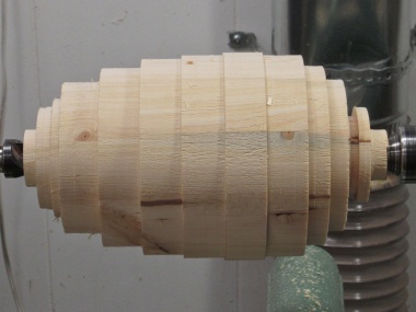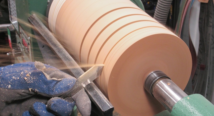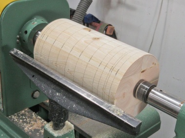 A few minutes work with a roughing gouge and then a large scraper for some smoothing resulted in this round version.