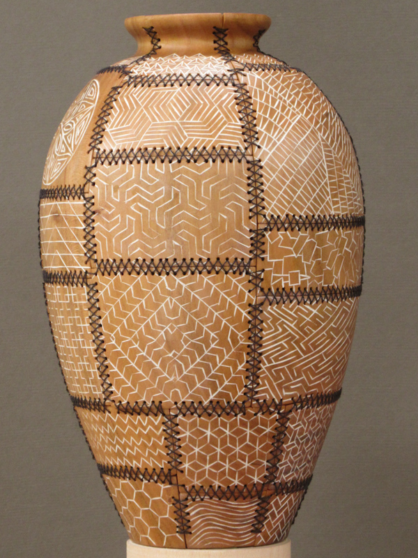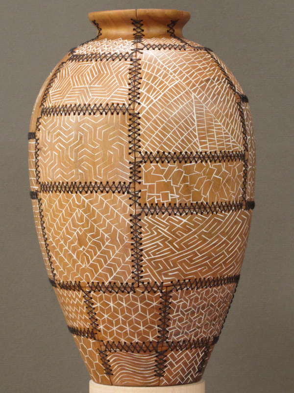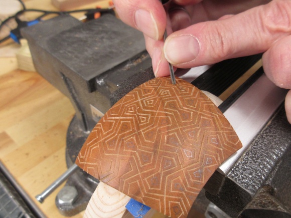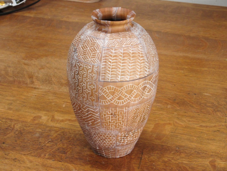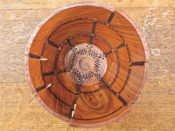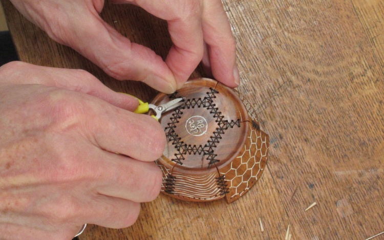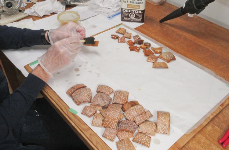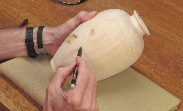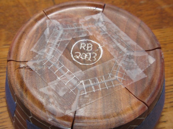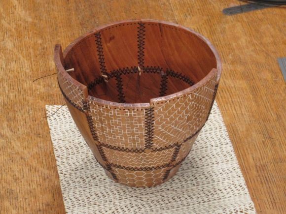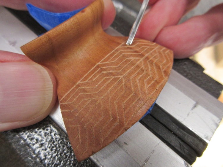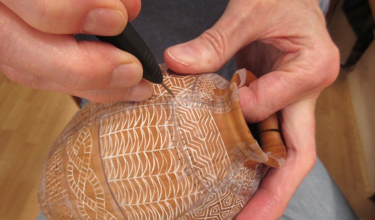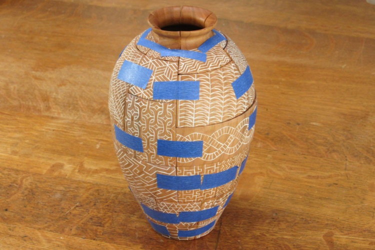 Once I was satisfied with the patches drawn on the spruce version, I transferred the locations to the cherry vessel.
