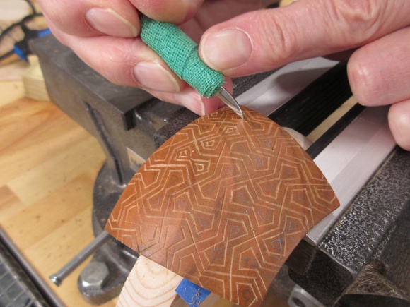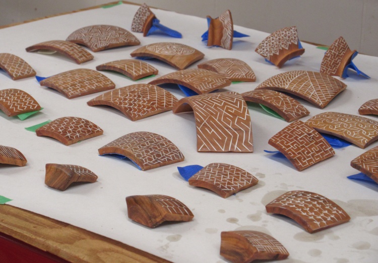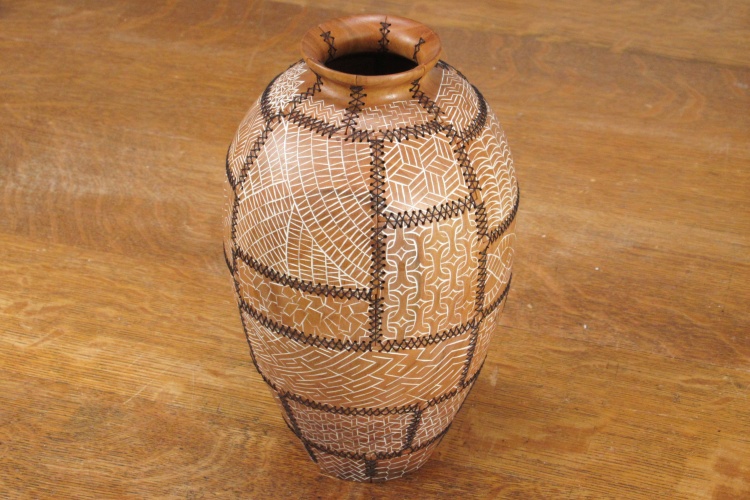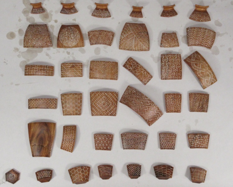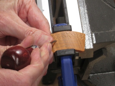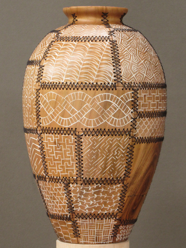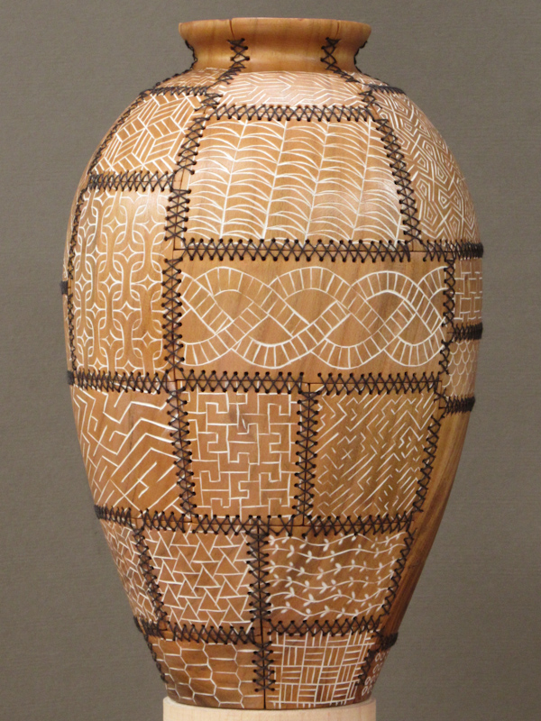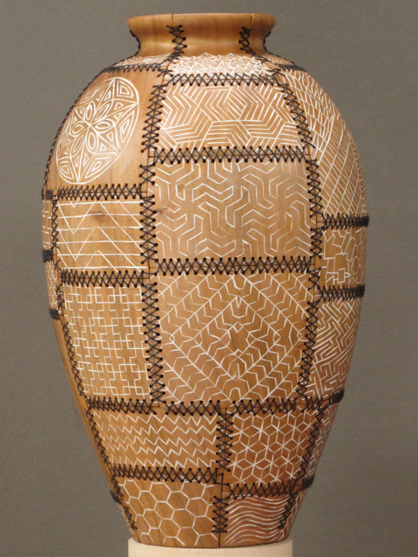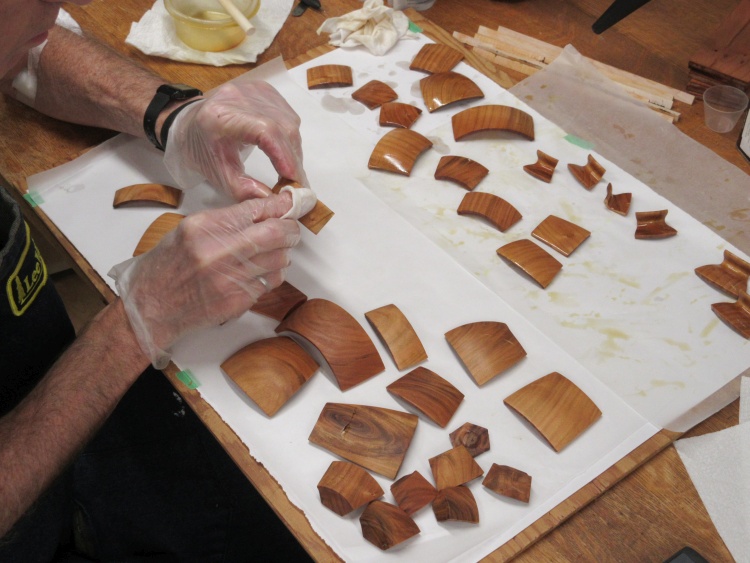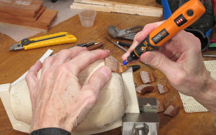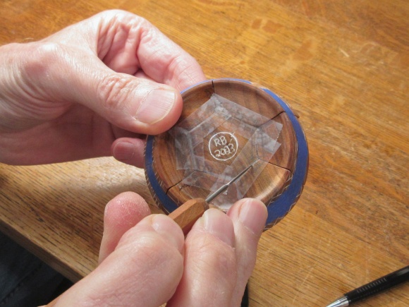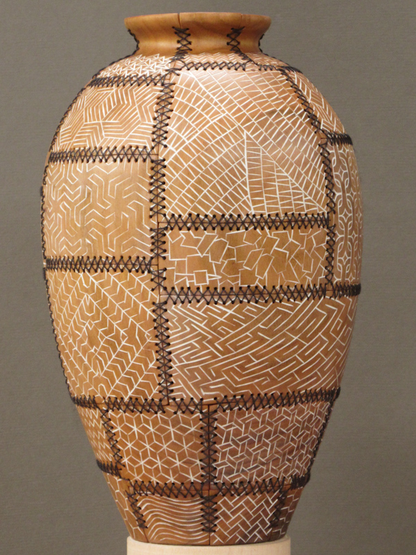 Once I was satisfied with the patches drawn on the spruce version, I transferred the locations to the cherry vessel.