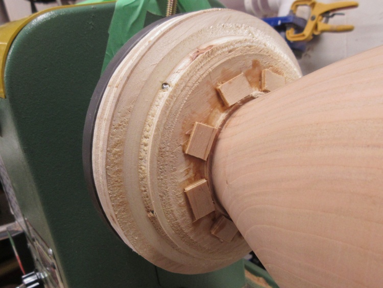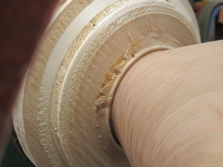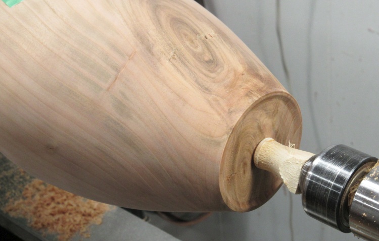 I glued a temporary stub to the middle of the bottom to give some room between the bottom and the tailstock.