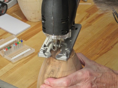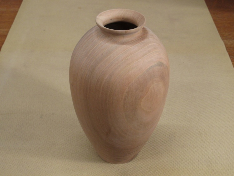 And here all that extra has been reduced to shavings and sawdust. The neck has been shaped and the outside has had some sanding done as well.