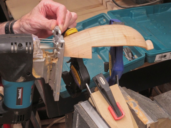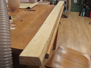My cunning plan was to draw patches on the vessel and cut it up. However I wasn't sure how many tries it would take to draw out suitably-shaped patches so I thought I'd make a quickie duplicate and do the drawing/erasing etc. on that one. This didn't need to be made from a particularly good material so I popped out to the garage and grabbed your basic construction 2 x 4 which was probably Spruce.