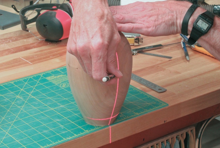 Here you can also see the pencilled-on reference lines that will aid in cutting to the profile I want (mostly at 1-inch intervals).