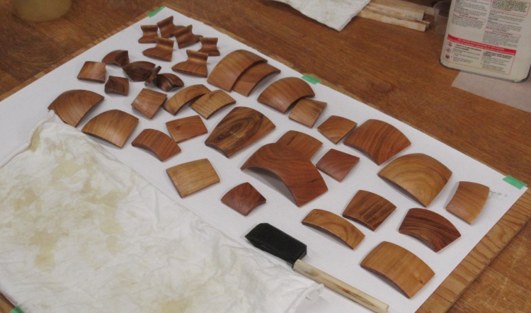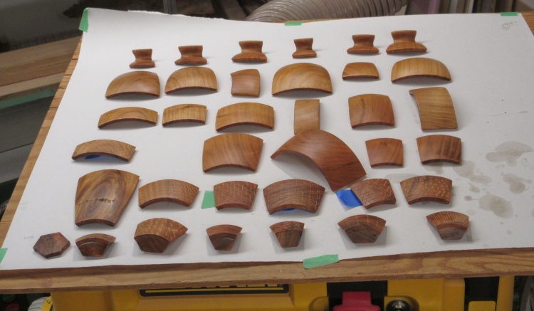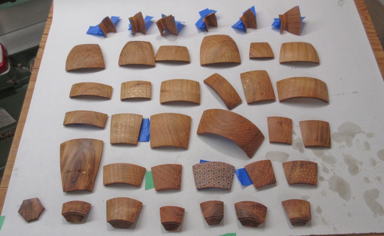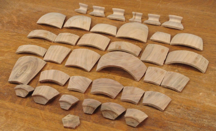 After the two coats of Danish Oil, I left the pieces to harden for a few days and meanwhile arranged them into numerical order again since that was how they were about to go together.