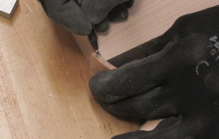 The holes were deburred on both sides using a small abrasive sphere. The holes were actually very clean - virtually no splinters - presumably due to the small size of the hole but the process added a bevel to the corner of the holes which I thought might ease thread movement.