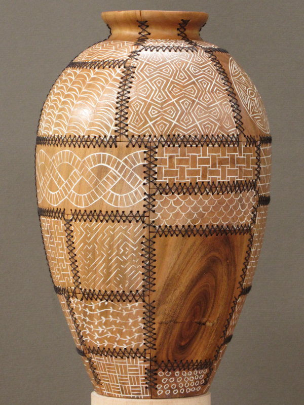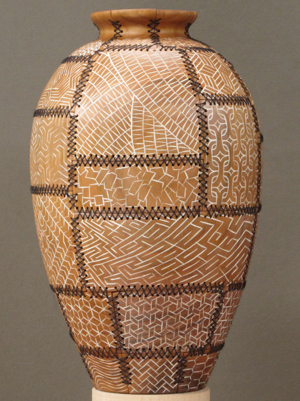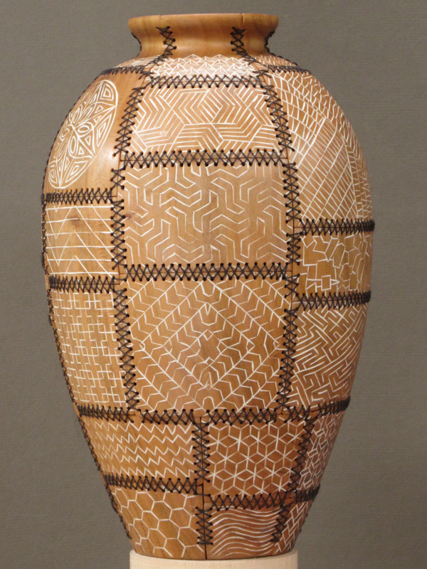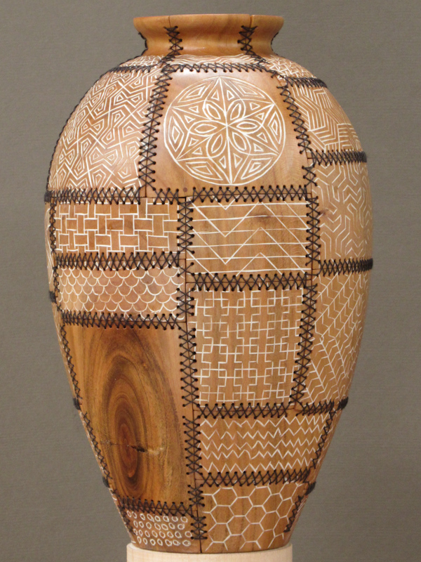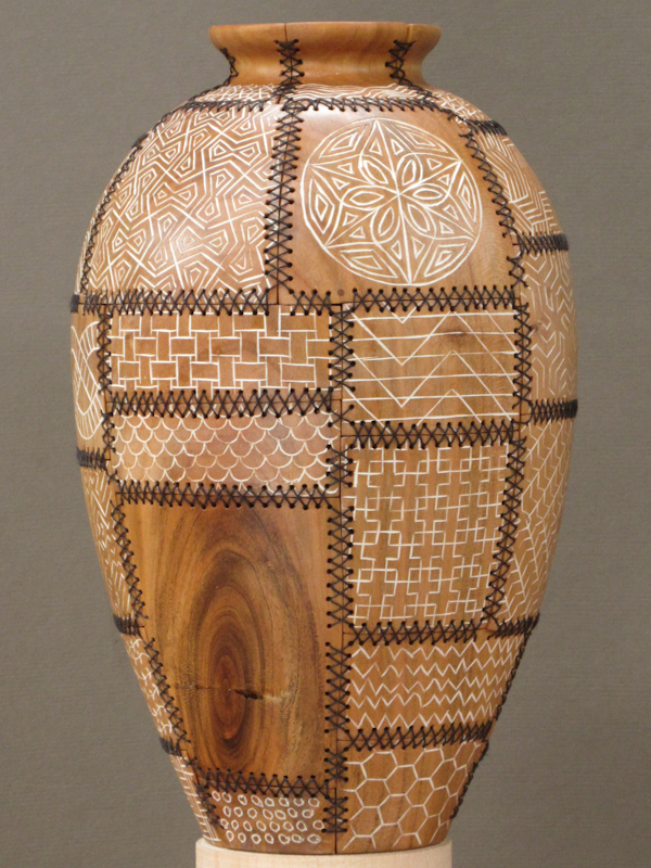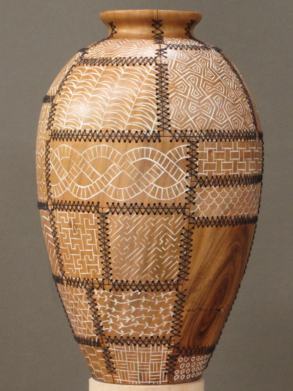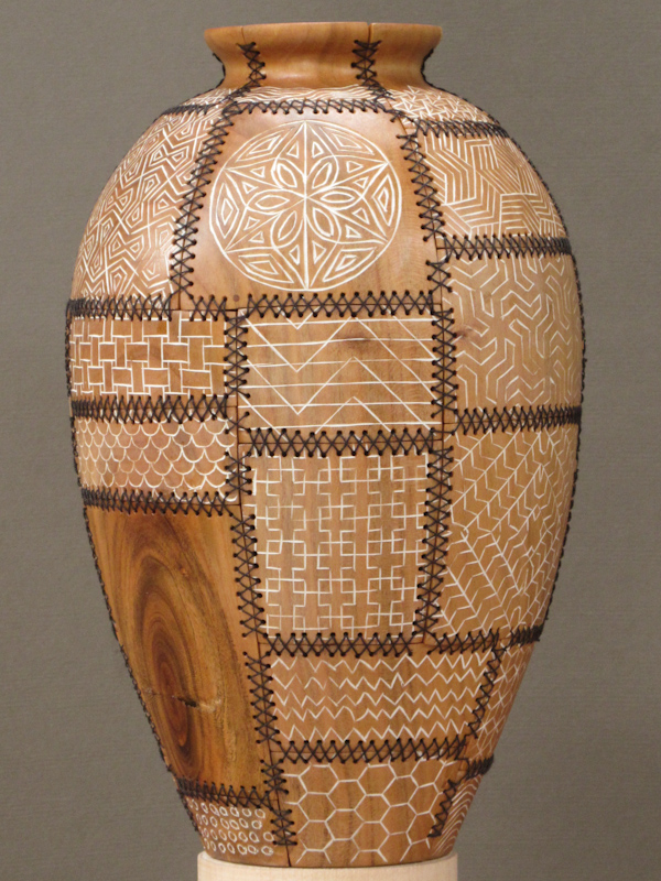 After finishing a multi-part assembly project I thought I should switch things up a bit and maybe turn something on the lathe. I'll also note that after doing a number of turnings I've evolved to treat it as more of a starting point rather than an end in itself, so that usually means some post-turning work. In this case, that work ended up being the saw-apart-and-sew-back-together process that formed this vessel. Ironically, that made it into another multi-part assembly project. But at least it's a