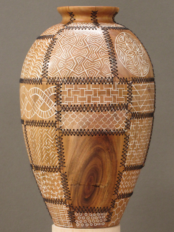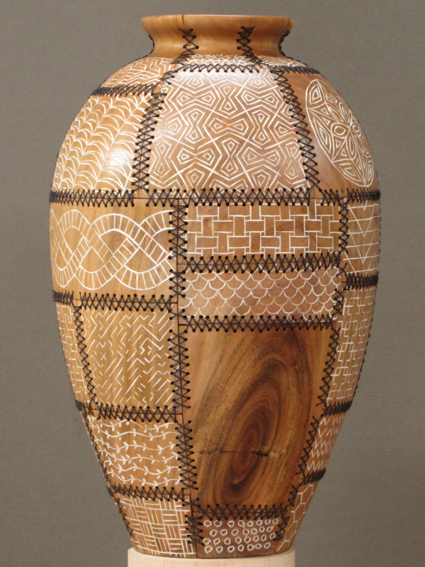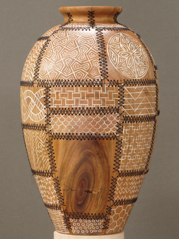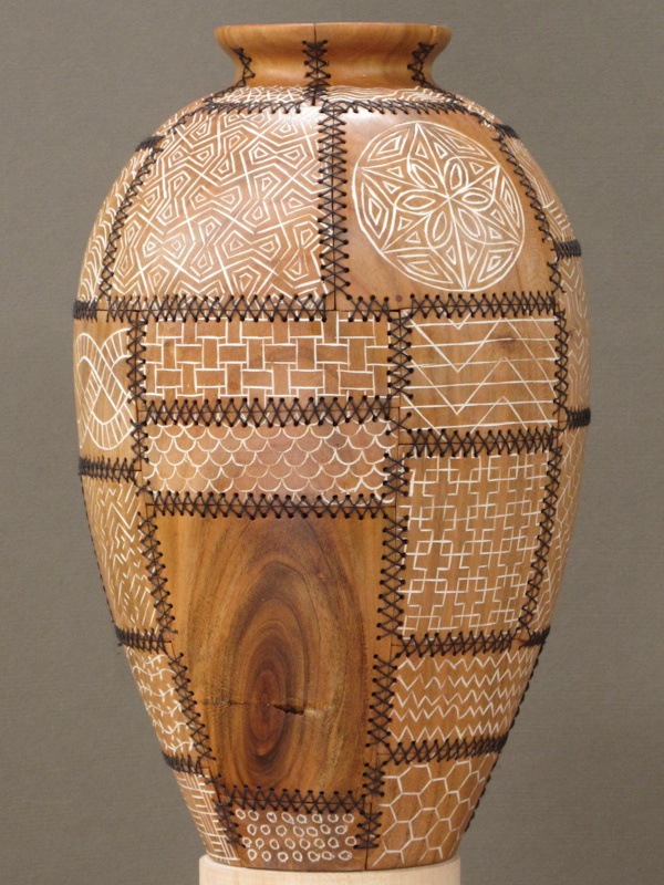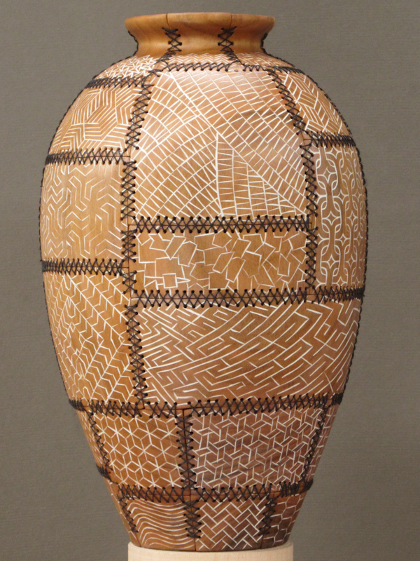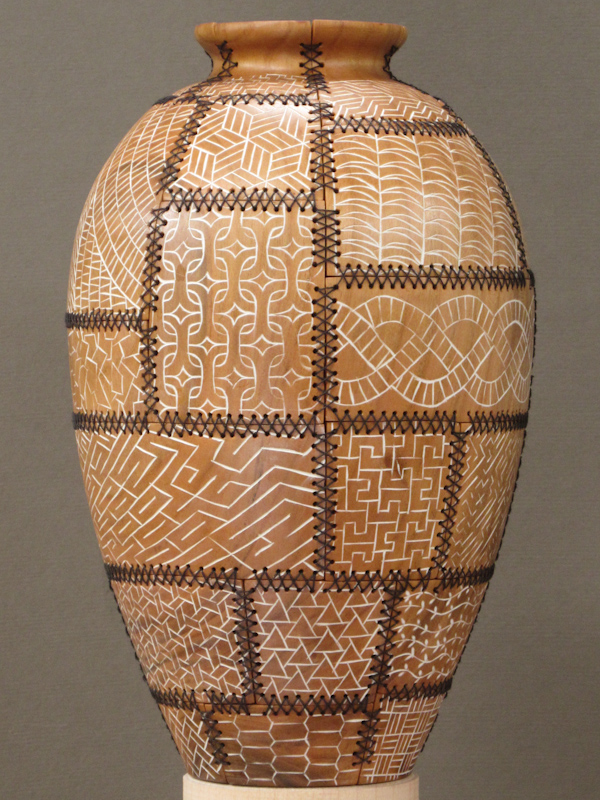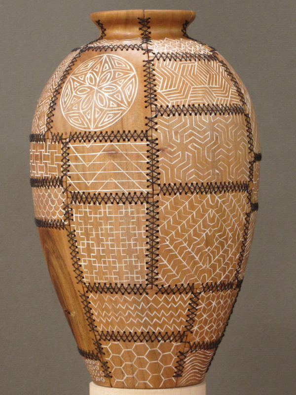 After finishing a multi-part assembly project I thought I should switch things up a bit and maybe turn something on the lathe. I'll also note that after doing a number of turnings I've evolved to treat it as more of a starting point rather than an end in itself, so that usually means some post-turning work. In this case, that work ended up being the saw-apart-and-sew-back-together process that formed this vessel. Ironically, that made it into another multi-part assembly project. But at least it's a