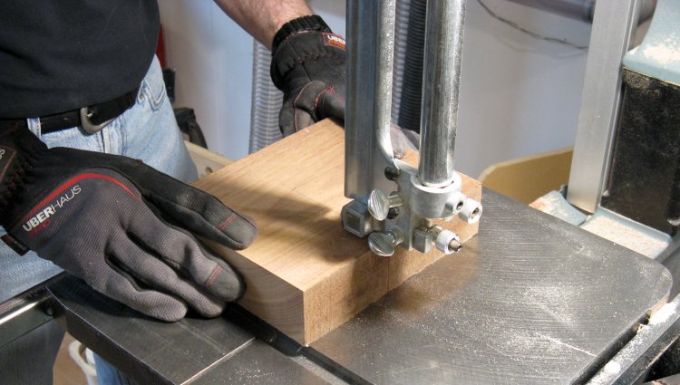 Walnut caps were to go on the top and bottom so I started by cutting up a short 2"-thick plank to make a couple appropriately-sized pieces.