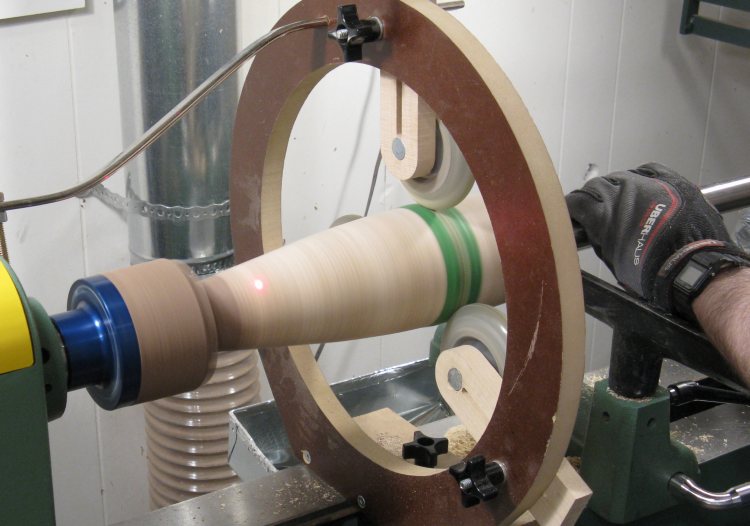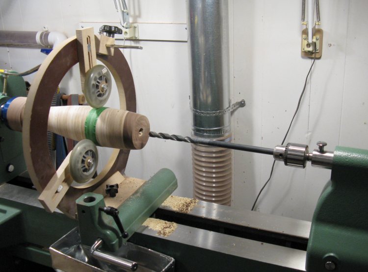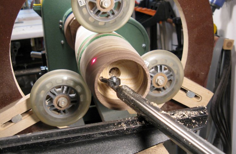 For hollowing, I used my captured hollowing jig that has a small cutter on the end. Here the first 1 or 2 inches have been hollowed.