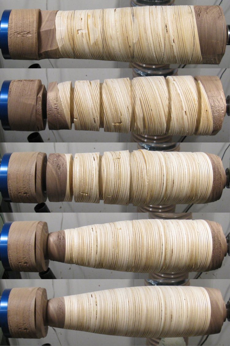 Then a parting tool was used to cut to the measured diameter at each line.