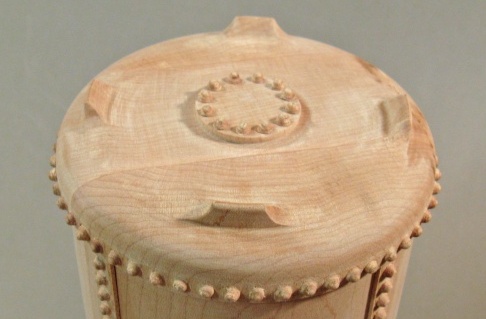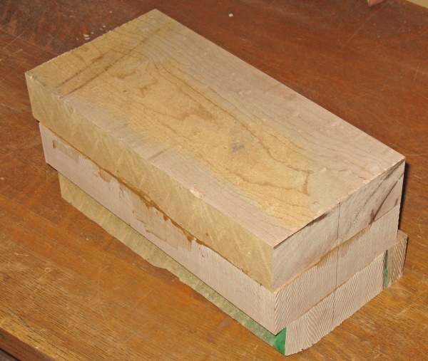 Since I was planning to dye the piece, I didn't need a nice grain. I chose maple since it would take the dye well and is a tight-grained wood with small pores - better for that metal look - and would also hold detail fairly well, which I needed for the "rivets". Maple is actually difficult to stain consistently, but that does not seem to apply when dye is used. I've used black aniline dye on maple successfully on several occasions.