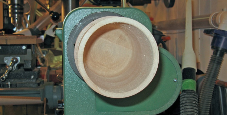 It was about this point that it occurred to me that there was no really compelling reason why I should try to hollow out the entire vessel from the throat. That would be pretty time-consuming and would add nothing to the piece (except as Mr. Churchill would put it; blood, sweat, toil, and all too likely; tears). So instead of that, I cut the top off and hollowed it out from the large opening.