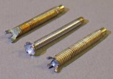 I couldn't find a suitable cutter for any plausible "rivet" shape, so one had to be made. After a couple dismal failures developmental prototypes, I ended up with a 4-flange cutter made from a largish Philips-head screw. It was softer metal than might be desired, but at least that made it easier to form and sharpen. However, by the time the cutting was done, the poor thing had one flange missing and another had been severely distorted and bent back into place.