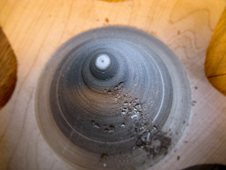 The taper of the donor vessel resulted in proportionally-sized center pieces which I tossed on the bench. Of course I later piled them up in order of decreasing size (and if you have to ask why, then you clearly don't know me).